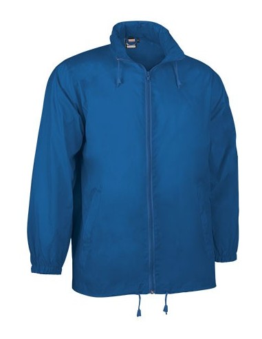 Chubasquero Rain de Valento con cuello alto y cierre delantero con cremallera, contiene una capucha recogida en un bolsillo con cremallera en el cuello y cintura y puños ajustables.