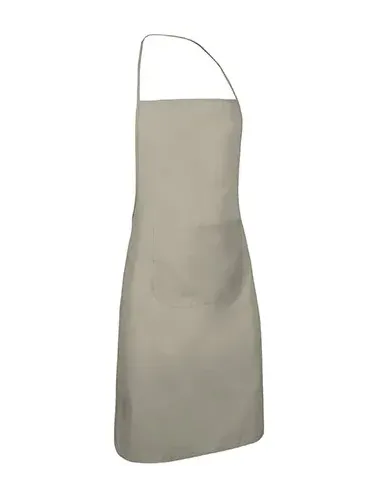 Delantal largo con un bolsillo en el pecho izquierdo y un bolsillo de tipo canguro. Se encuentra disponible en una gran cantidad de colores.