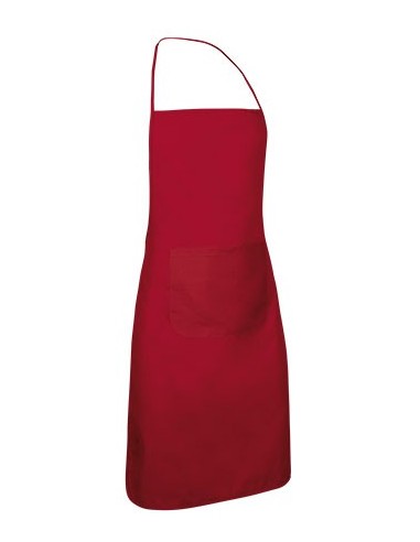 Delantal largo con un bolsillo en el pecho izquierdo y un bolsillo de tipo canguro. Se encuentra disponible en una gran cantidad de colores.