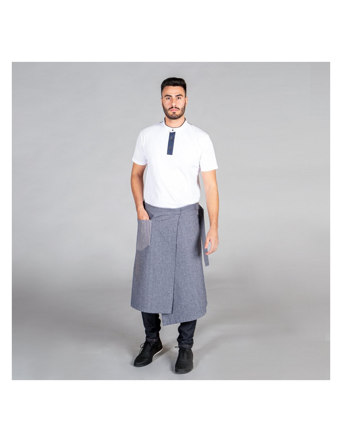 DELANTAL FRANCES CON HEBILLA FABRICADO EN TEJIDO LONETA 290 GR/M2 85% CO 15% PES