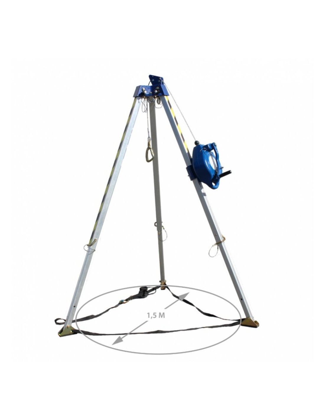 Trípode de aluminio Trip1 REF. 0840047 (COD. SAP: 100209600001) con 1 polea y bolsa de transporte anti caídas con recuperador koala 15M, REF. 0860058 (COD. SAP: 100301900003) y además 1 pletina de fijación REF. 0860059 (COD. SAP: 100300300004)