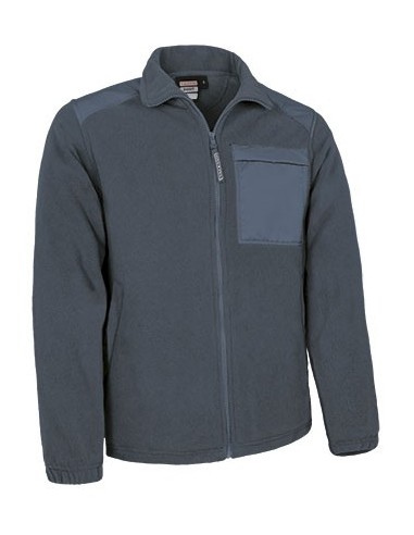 Chaqueta polar Basset de Valento con refuerzos en hombros, codos y espalda superior, fabricada con tejido micropolar anti-peeling, cuello alto de doble capa con cremallera completa y dos bolsillos.