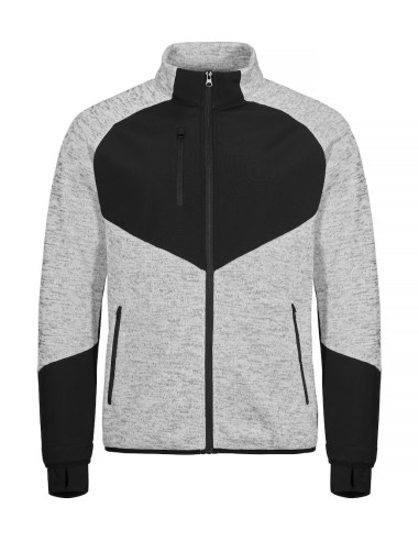 Chaqueta polar cálida elaborada en punto con secciones shofshell, con tres bolsillos con cremallera en la parte exterior, dos bolsillos interiores grandes, puños elásticos, agujeros para los pulgares, una banda reflectante y un colgador en el cuello. Disponible en verde, ceniza y negro.