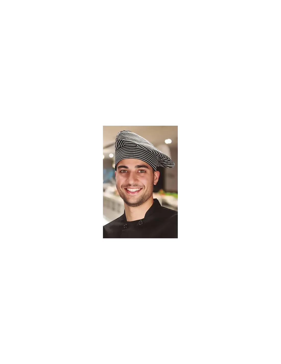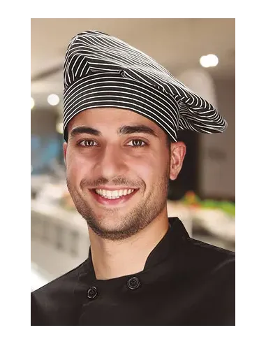 Gorro de cocina RATATOUILLE, un gorro de chef con raya diplomática, ideal como ropa laboral y uniforme de hostelería.