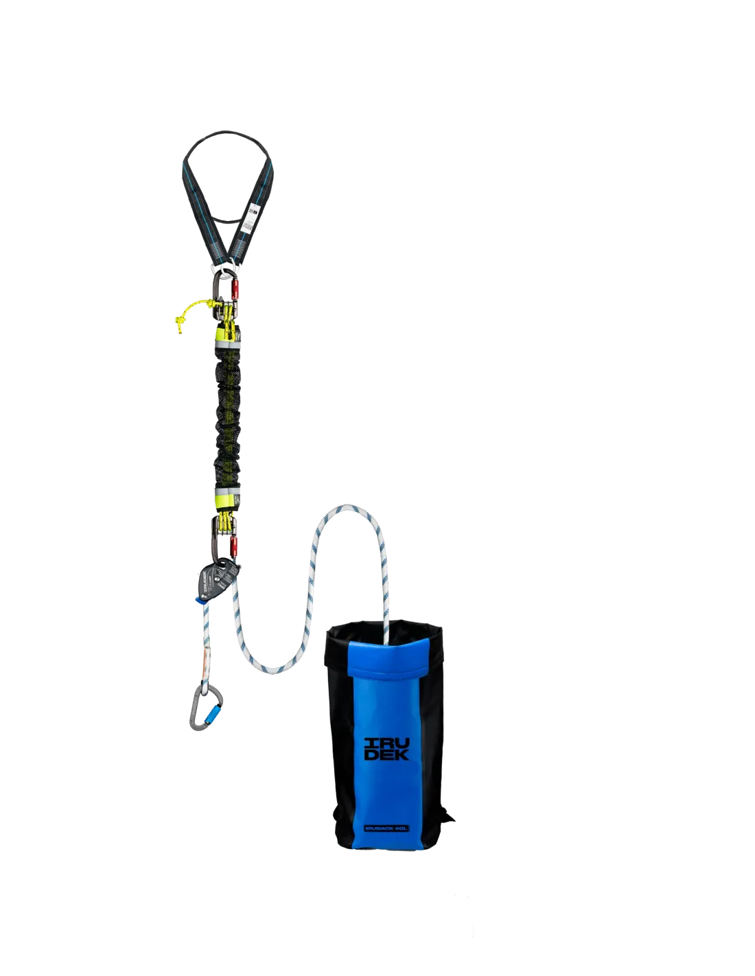 RK1 de irudek: kit de rescate para evacuar accidentados tras una caída. Incluye descensor, polipasto, mosquetones, cinta, petate y cuerda.