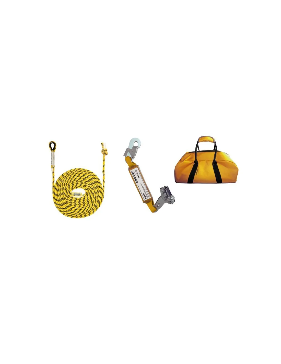 Safetop KIT LÍNEA VIDA VERTICAL, cuerda de 50 metros, incluye mochila para transportar los accesorios y un absolvedor con altochut y mosqueton, sirve para que proteja el cuerpo de la caída, es cómodo y resistente.