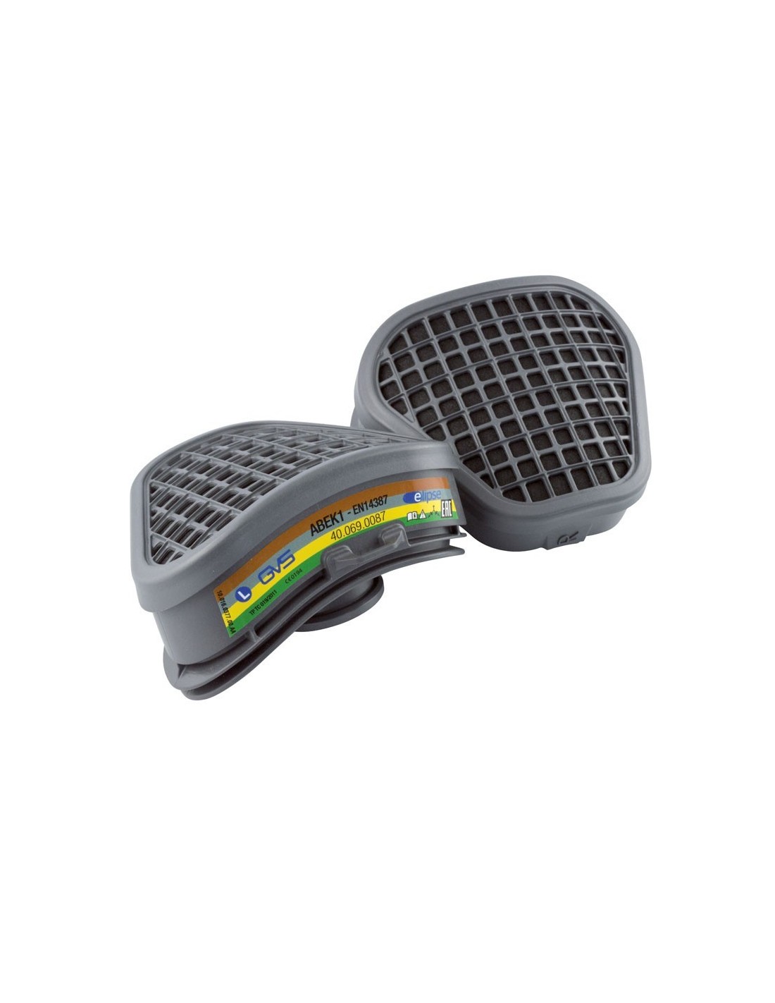Filtro de gases combinados ABEK1 de la marca safetop, un filtro válido para los modelos Elipse Integra 33517, Elipse Integra 33519, Elipse Integra 33518; Elipse 33507, Elipse 33508 y Elipse 33509.