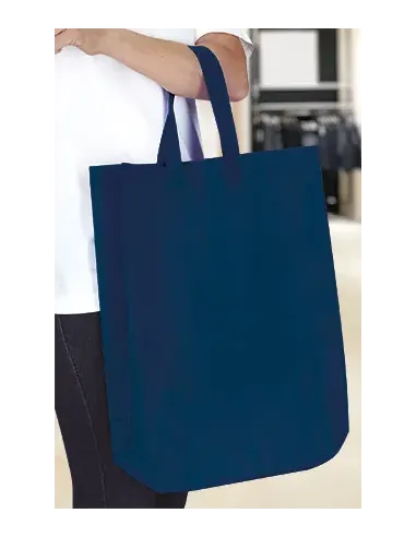 La bolsa Shopping de Valento está confeccionada en tejido no tejido con acabado plastificado en la parte exterior, lo que prolonga su durabilidad y la hace más robusta frente al uso continuado. El borde superior está rematado con dobladillo, mientras que las asas cortas incluyen un refuerzo termo-sellado en forma de cruz, aportando mayor solidez en los puntos de agarre.
