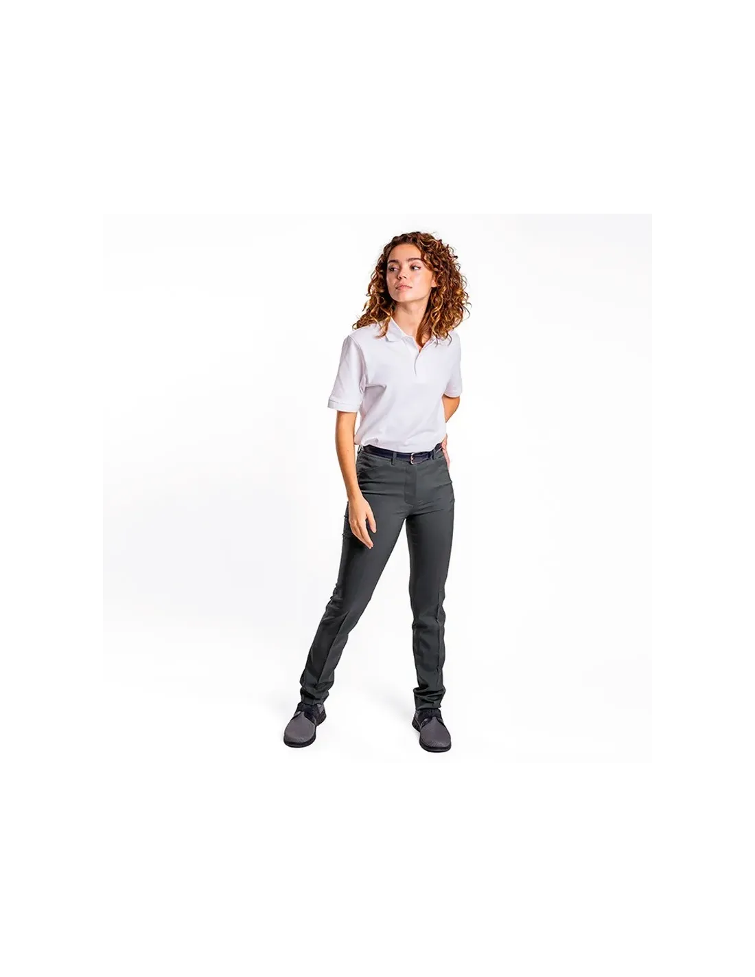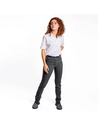 Pantalón de mujer que contiene un cierre central con botón y cremallera, presenta una máxima elasticidad para aumentar tu libertad de movimiento. Es una prenda muy cómoda tanto para llevarla a cualquier trabajo como para llevarla diariamente.