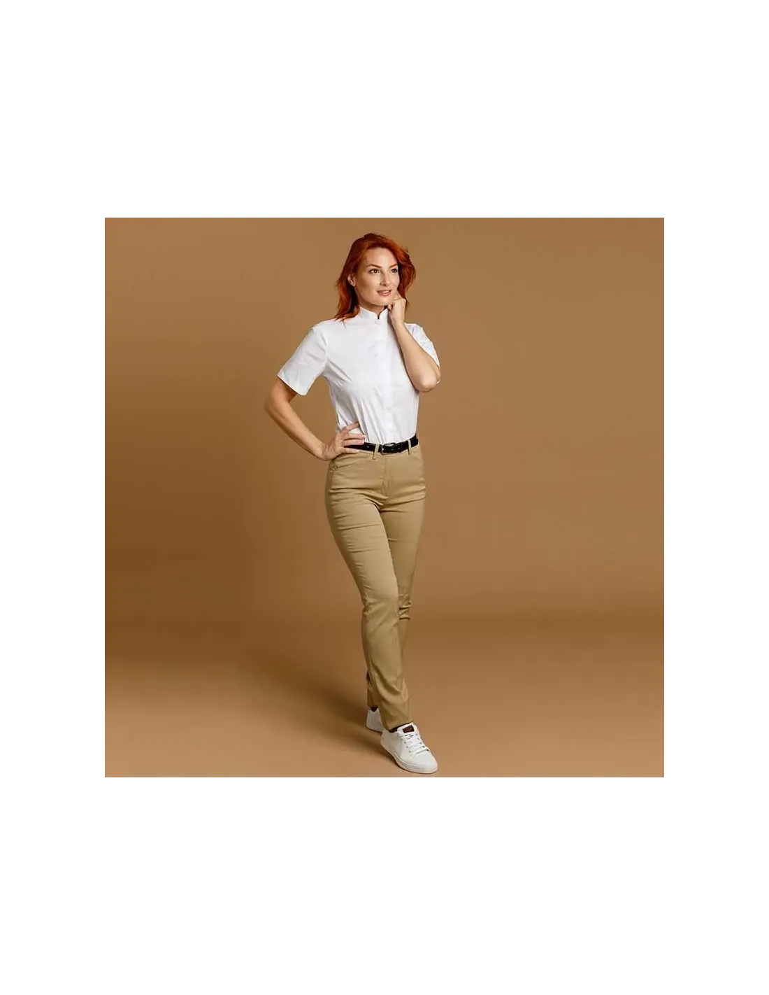 Pantalón de mujer que contiene un cierre central con botón y cremallera, presenta una máxima elasticidad para aumentar tu libertad de movimiento. Es una prenda muy cómoda tanto para llevarla a cualquier trabajo como para llevarla diariamente.