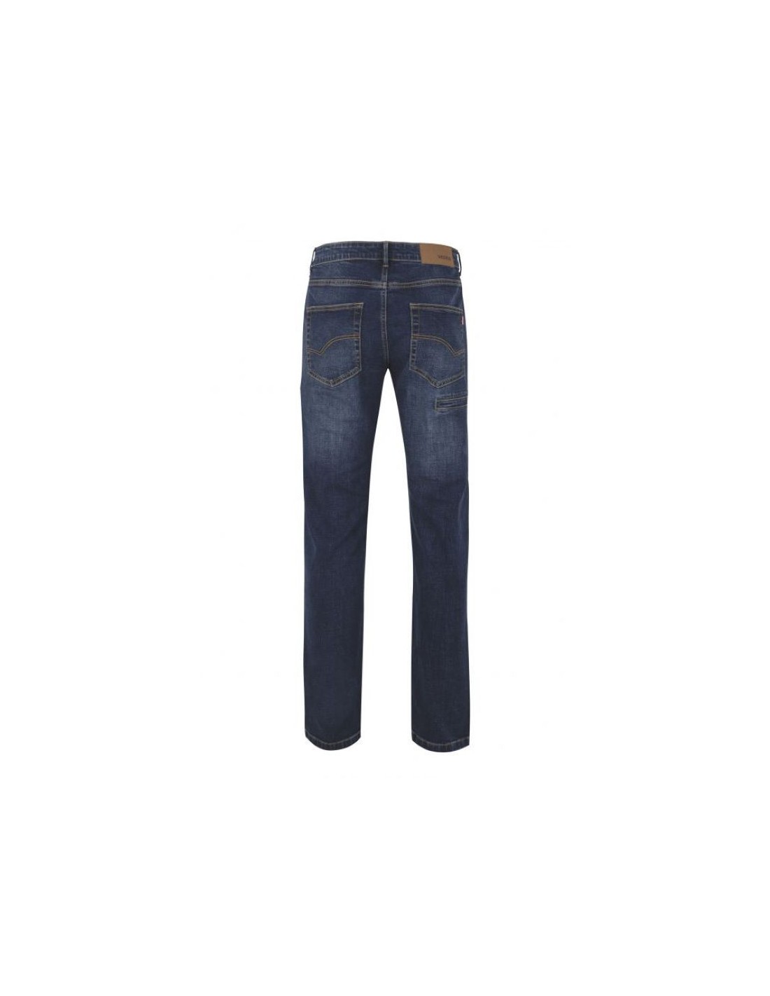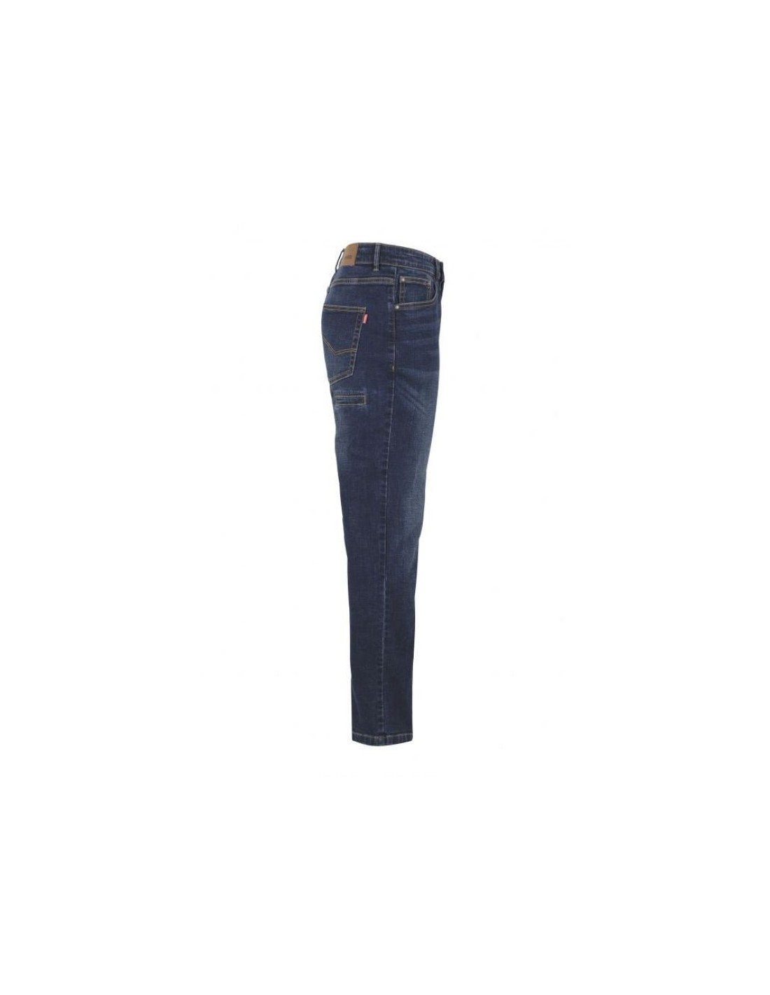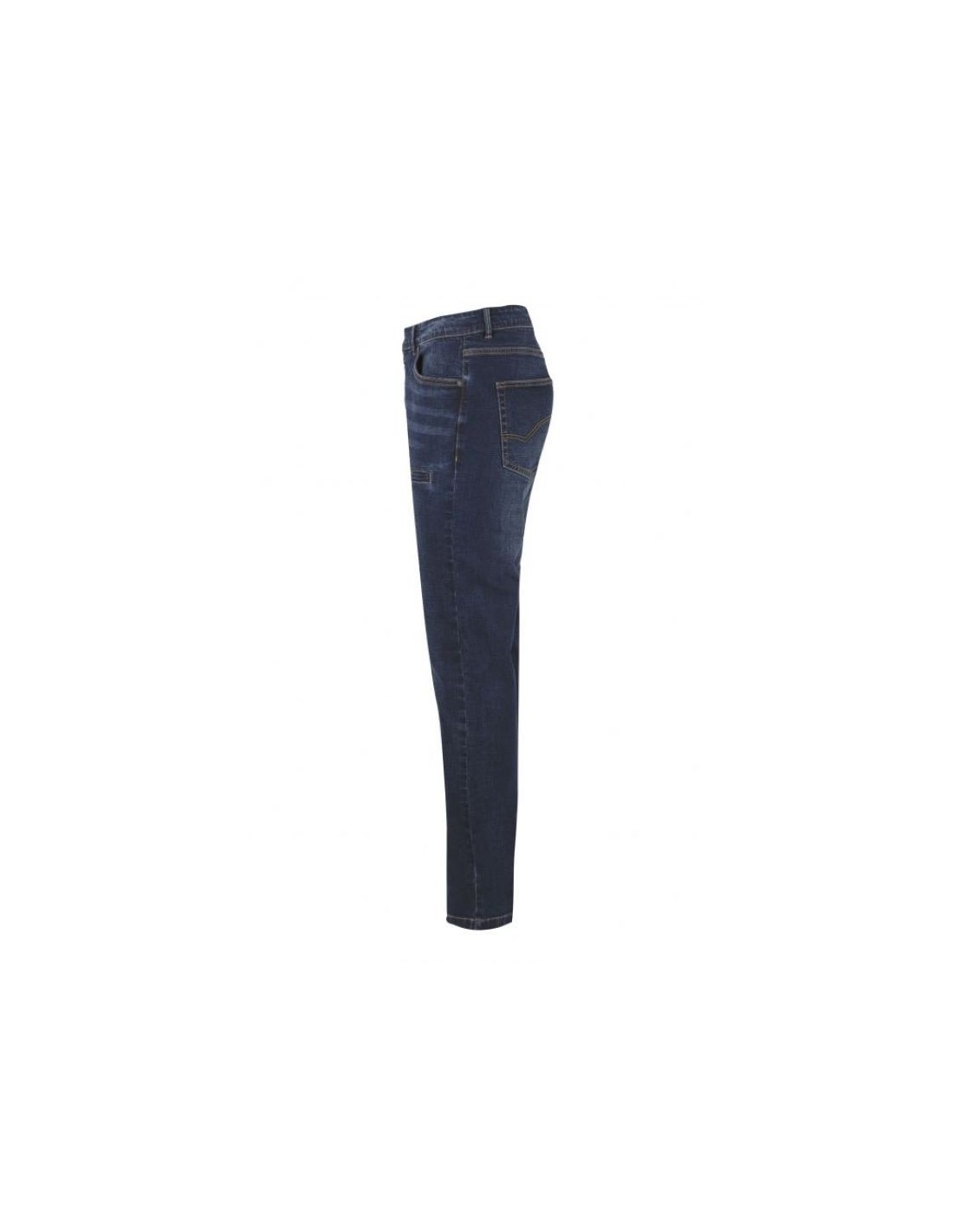 Este pantalón stretch denim contiene un corte slim fit, un cierre central de botones, una doble costura de seguridad, que esto hace que la resistencia de los pantalones aumente y por último contiene remaches de refuerzo metálicos. Este pantalón consta de siete bolsillos, dos delanteros, uno relojero, dos de parche y otros dos bolsillos de vivo para móvil o herramienta, uno en cada pierna.