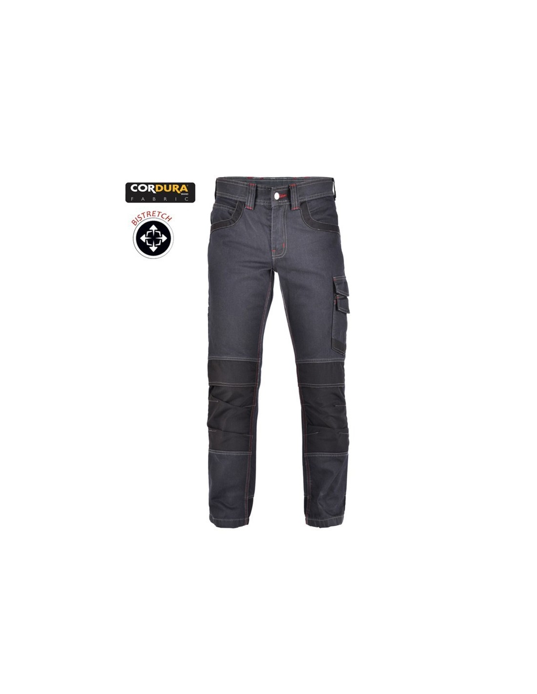 Llega a Lorcaepis un pantalón vaquero que es elástico y que contiene muchos bolsillos. Presenta refuerzos en cordura. Las costuras y presillas en contraste rojo.