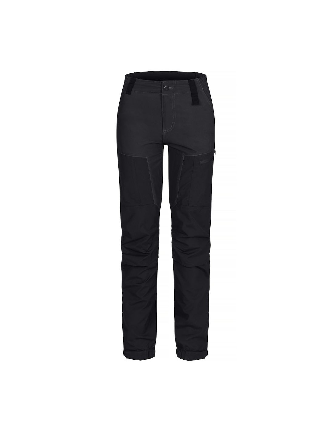Pantalón de trekking confeccionado en tejido resistente al viento y al agua. Este modelo tiene corte de mujer. Cuenta con elásticos en cintura y rodilla, además de dos bolsillos delanteros, dos bolsillos con cremallera en la pierna y uno detrás. Disponible en colores naranja, verde y negro.