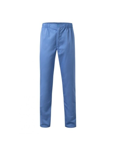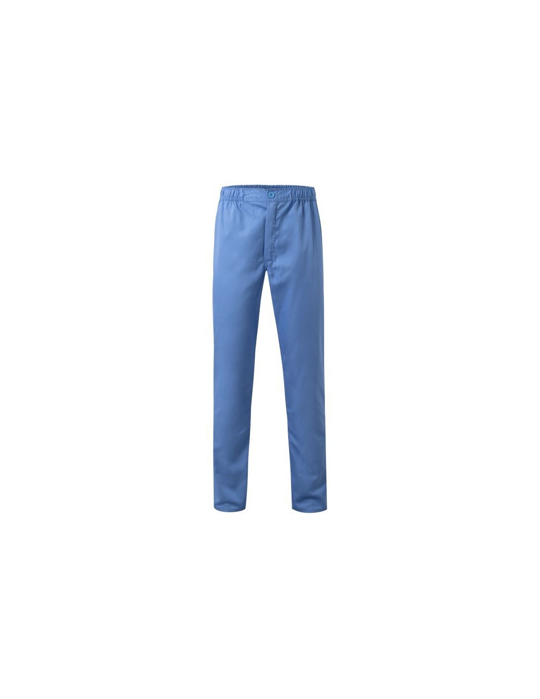 Pantalón de pijama confeccionado en poliéster y algodón, con cinturilla elástica, cierre en zona central con cremallera y botón, y doble costura de seguridad. Disponible en blanco, verde y celeste.