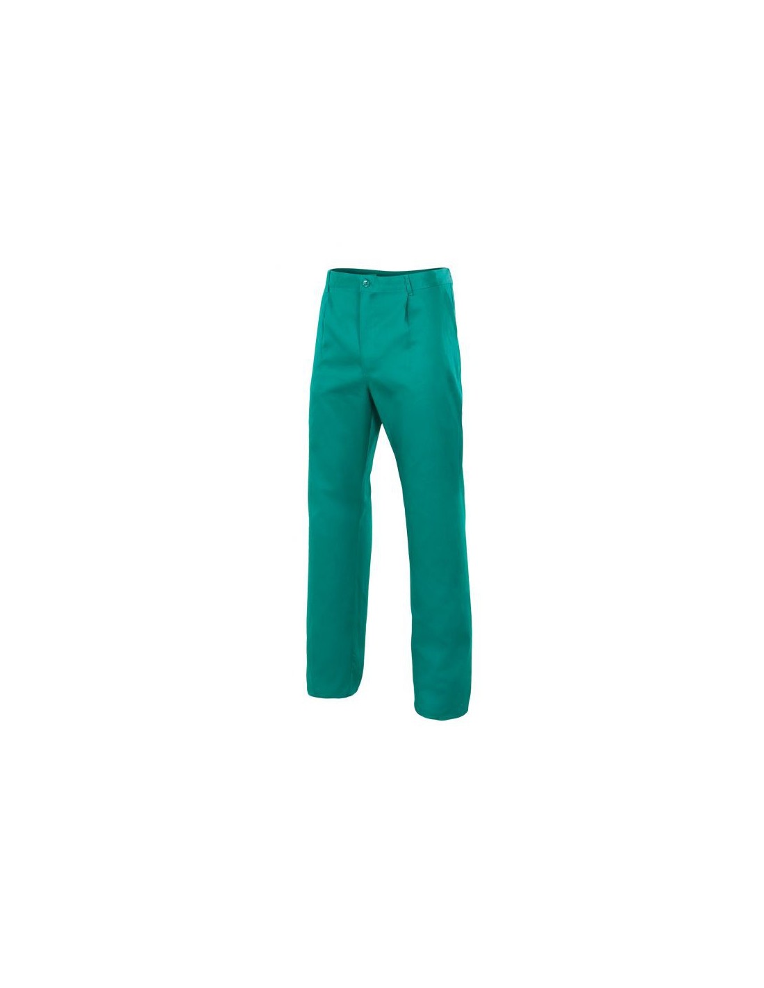 Pantalón con pinzas confeccionado en poliéster y algodón, con cinturilla elástica, pinzas, cierre en zona central con cremallera y botón, y costura de seguridad en la zona trasera. Disponible en varios colores.