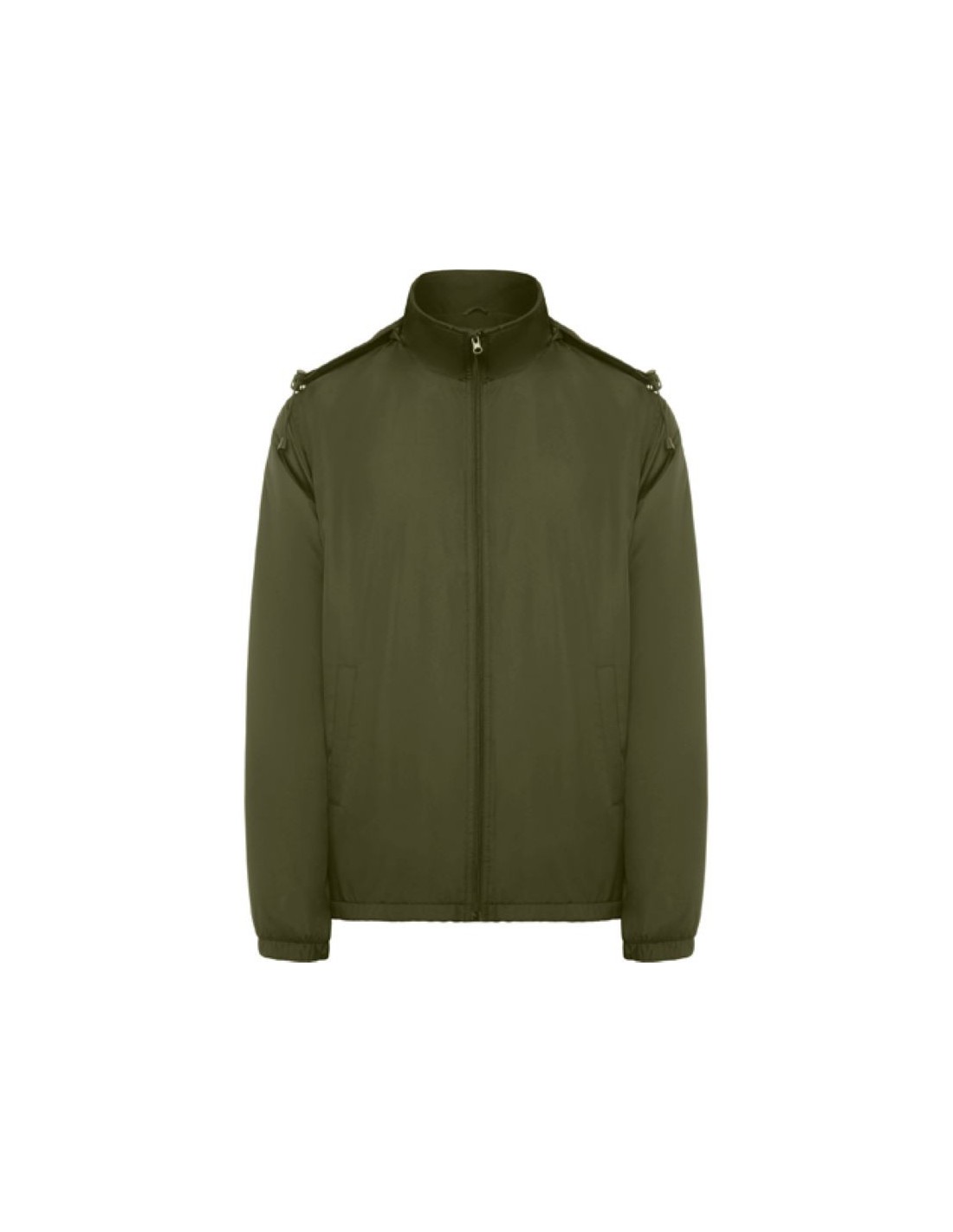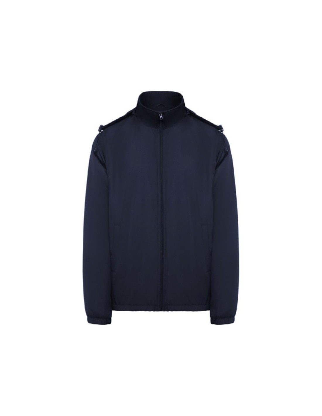 Es una chaqueta que es bastante liviana y lo mejor que es repelente al agua. Cuenta con un cuello alto y la capucha es extraible. Tiene una cremallera central y un bolsillo en el interior en la parte derecha del pecho. La chaqueta entera esta hecha de 100% poliéster.