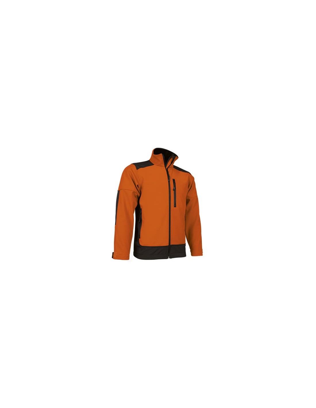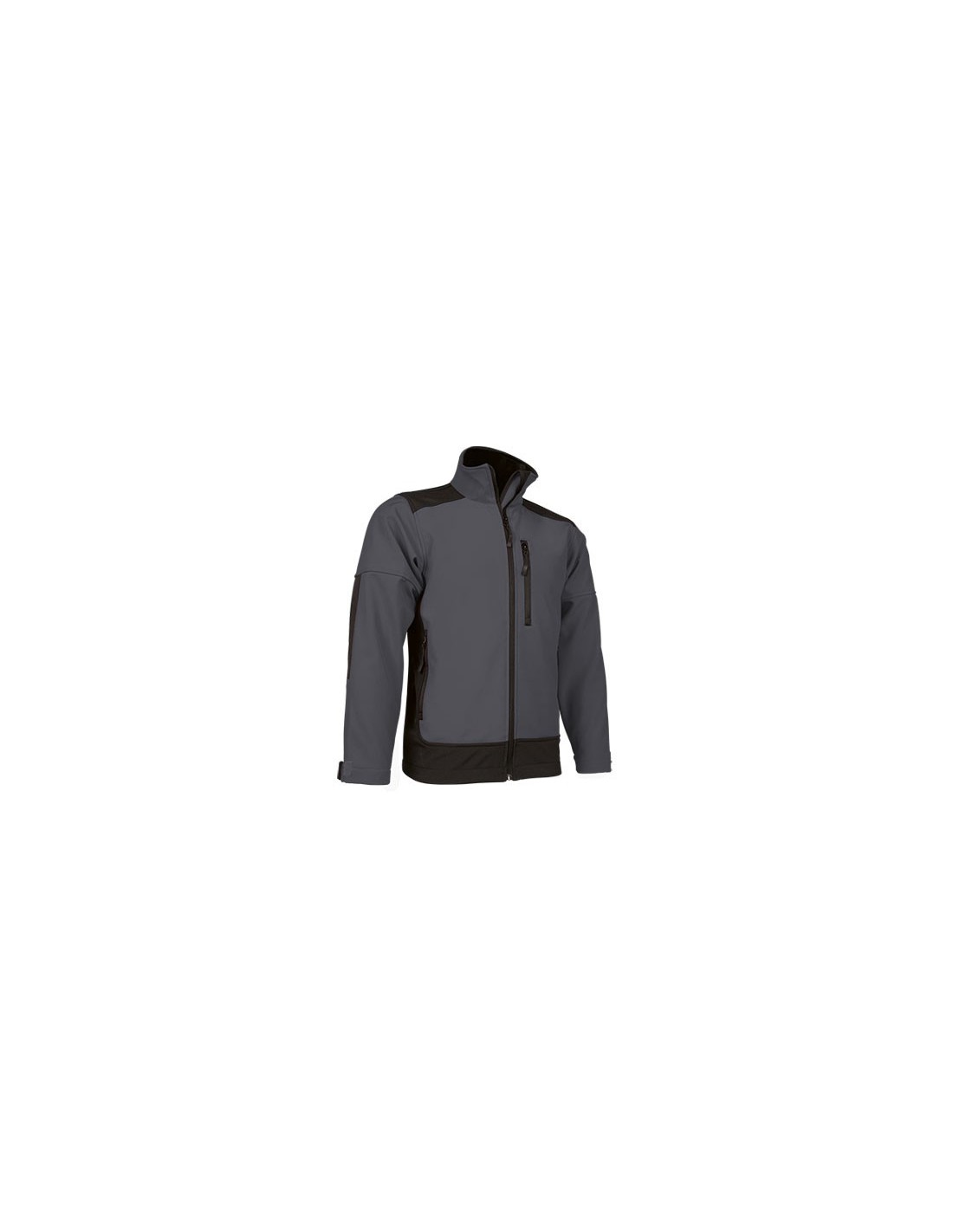 Chaqueta softshell Saponi de Valento se ha fabricada con tejido softshell elástico grueso de tres capas, puños con velcro, cuello alto de doble capa y dos bolsillos verticales, ideal para realizar actividades al exterior.