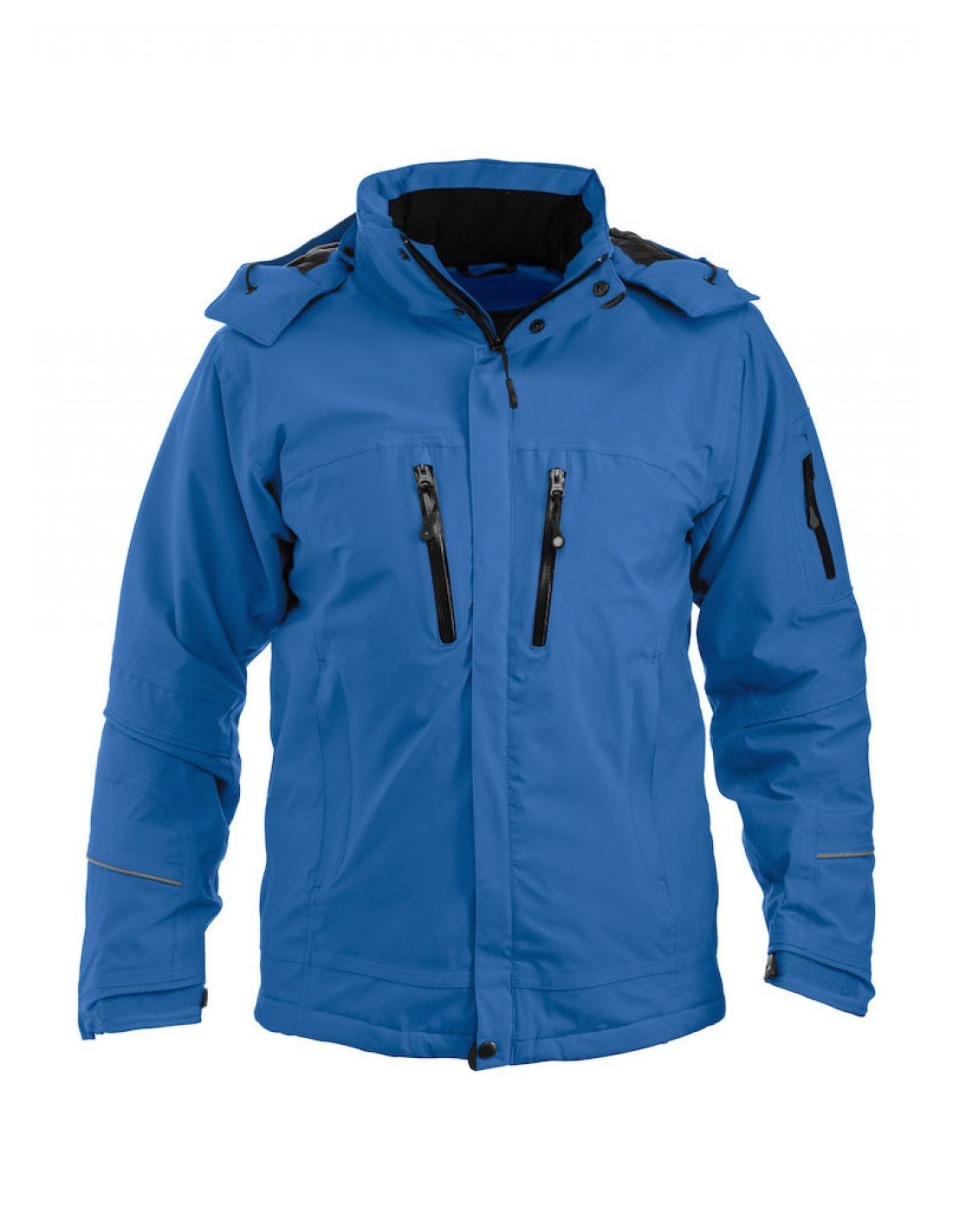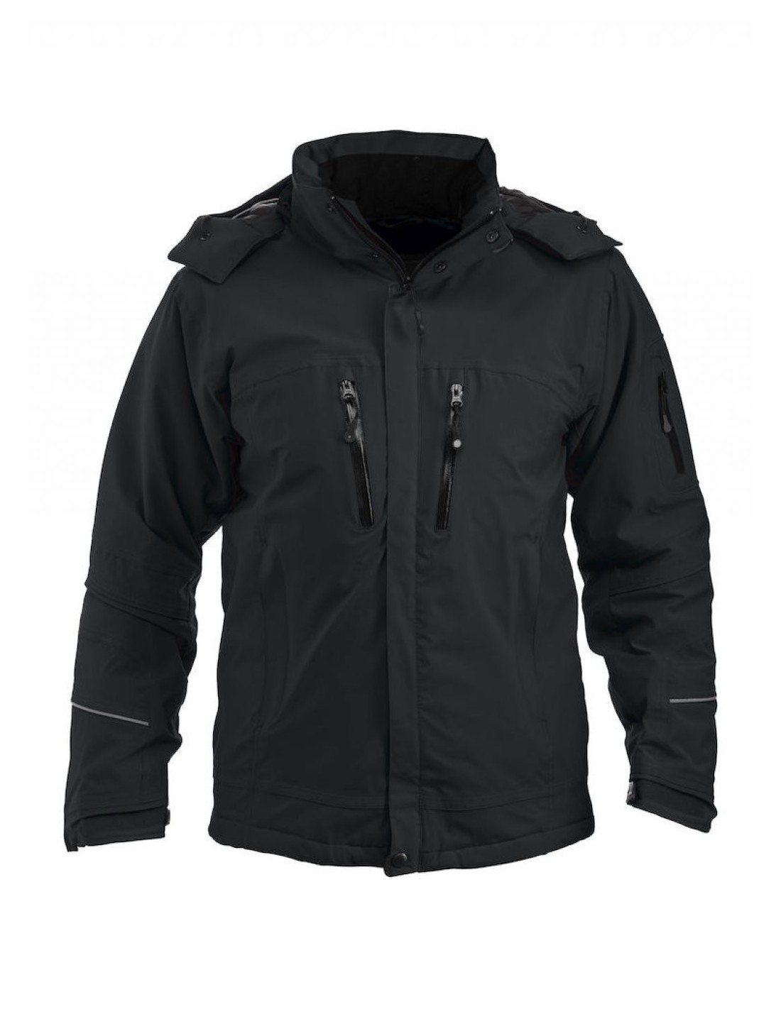 Parka sanders del fabricante new wave, una parka de tipo softshell con capucha extraíble y mangas precurvadas con puño interior en mangas y bolsillo interior cerrado y vivo reflectamente. Exterior de 100% poliéster con film PU e interior de 100% poliéster con acolchado de 100% poliéster.