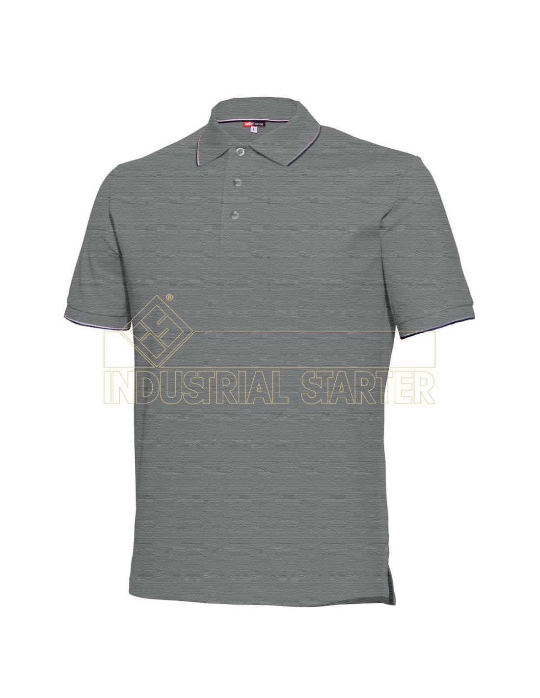 Polo con contraste a color en cuello, botones, tapeta, manga y aberturas laterales. Tapeta con tres botones, cinco en la versión mujer. Disponible en varios colores.