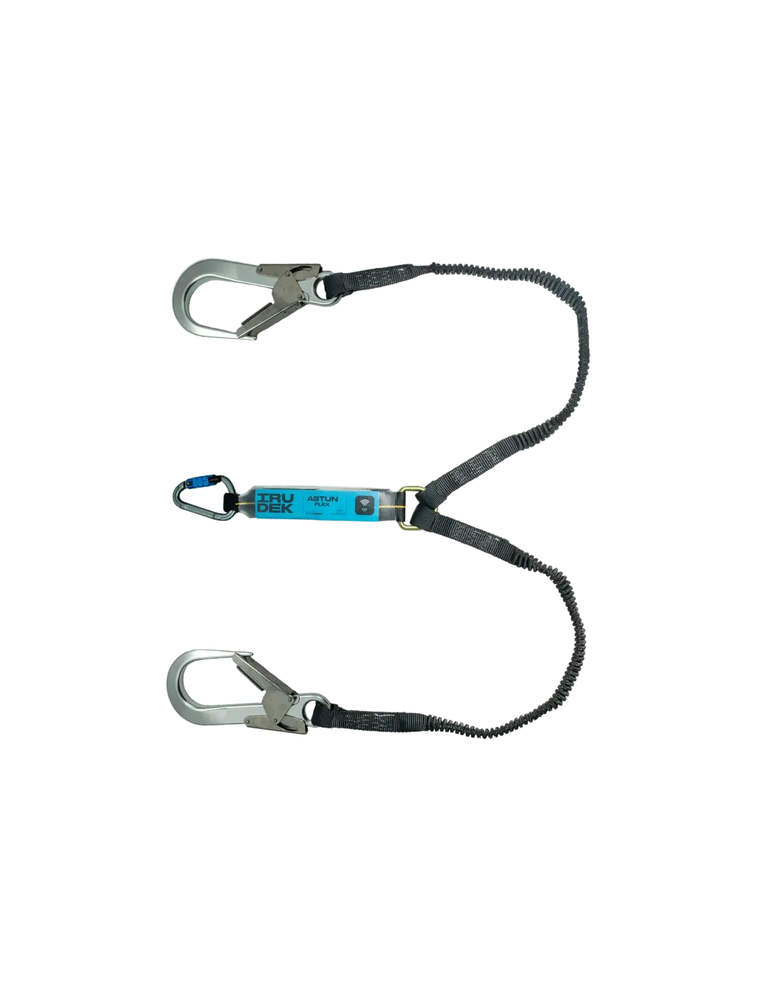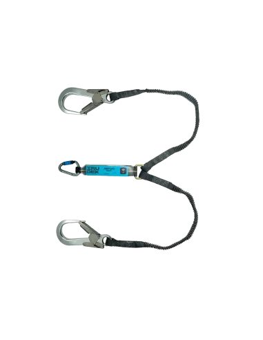 Absorbedor elástico bifurcado + 1 mosquetón de acero automático + 2 mosquetones de aluminio de abertura 60 mm.