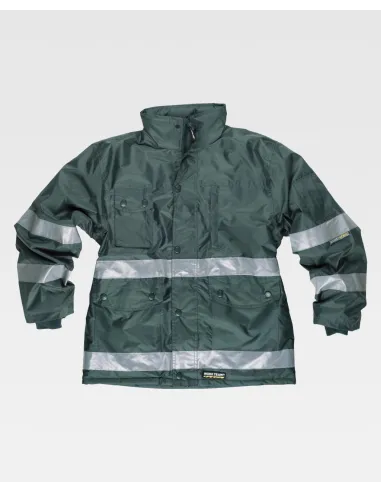 Parka acolchada en tejido Oxford con cintas reflectantes en la cintura y en el pecho además de los brazos. Modelo S1008 del fabricante workteam.