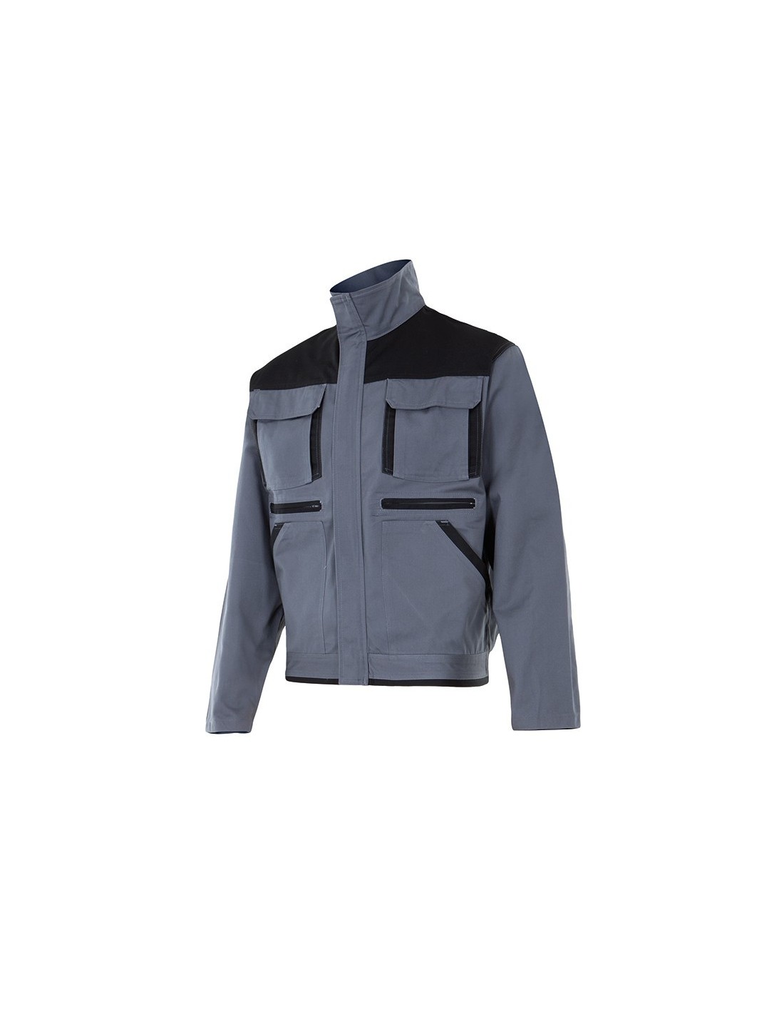 Cazadora bicolor con cremallera central oculta con tapeta y varios bolsillos. canesú delantero y trasero en contraste