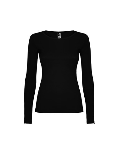 Camiseta semientallada, de manga larga y cuello acabado con ribete fino.