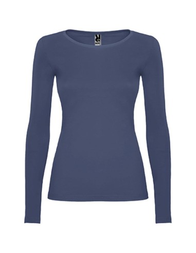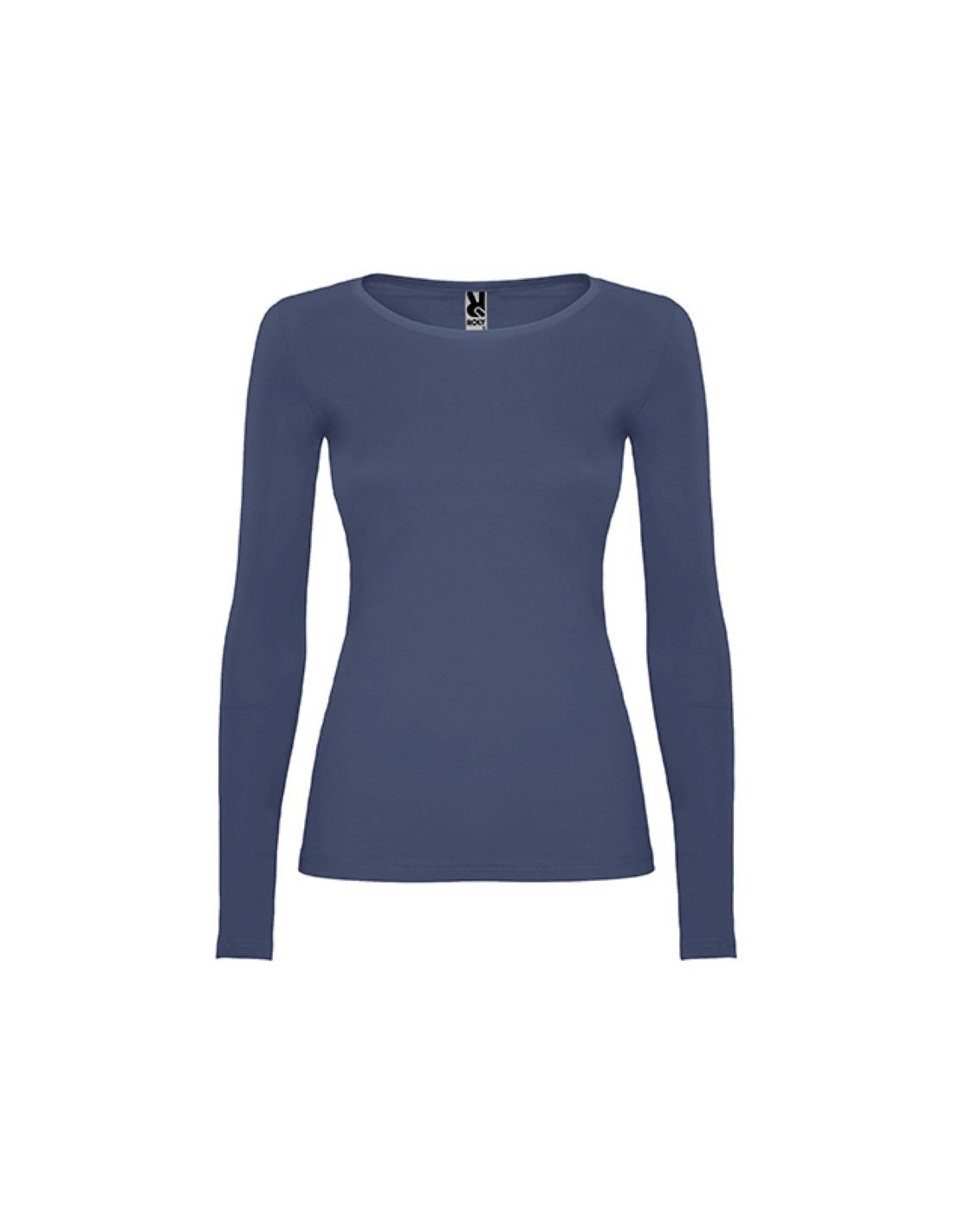 Camiseta semientallada, de manga larga y cuello acabado con ribete fino.