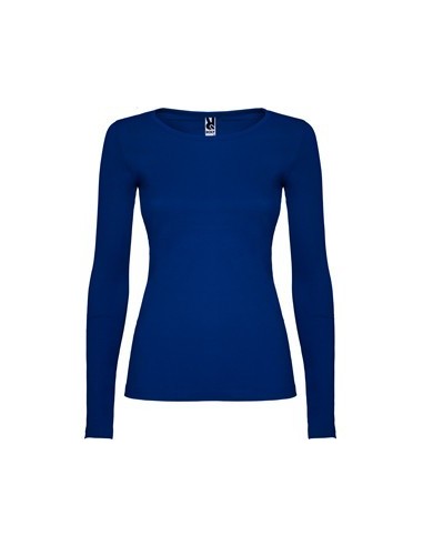 Camiseta semientallada, de manga larga y cuello acabado con ribete fino.