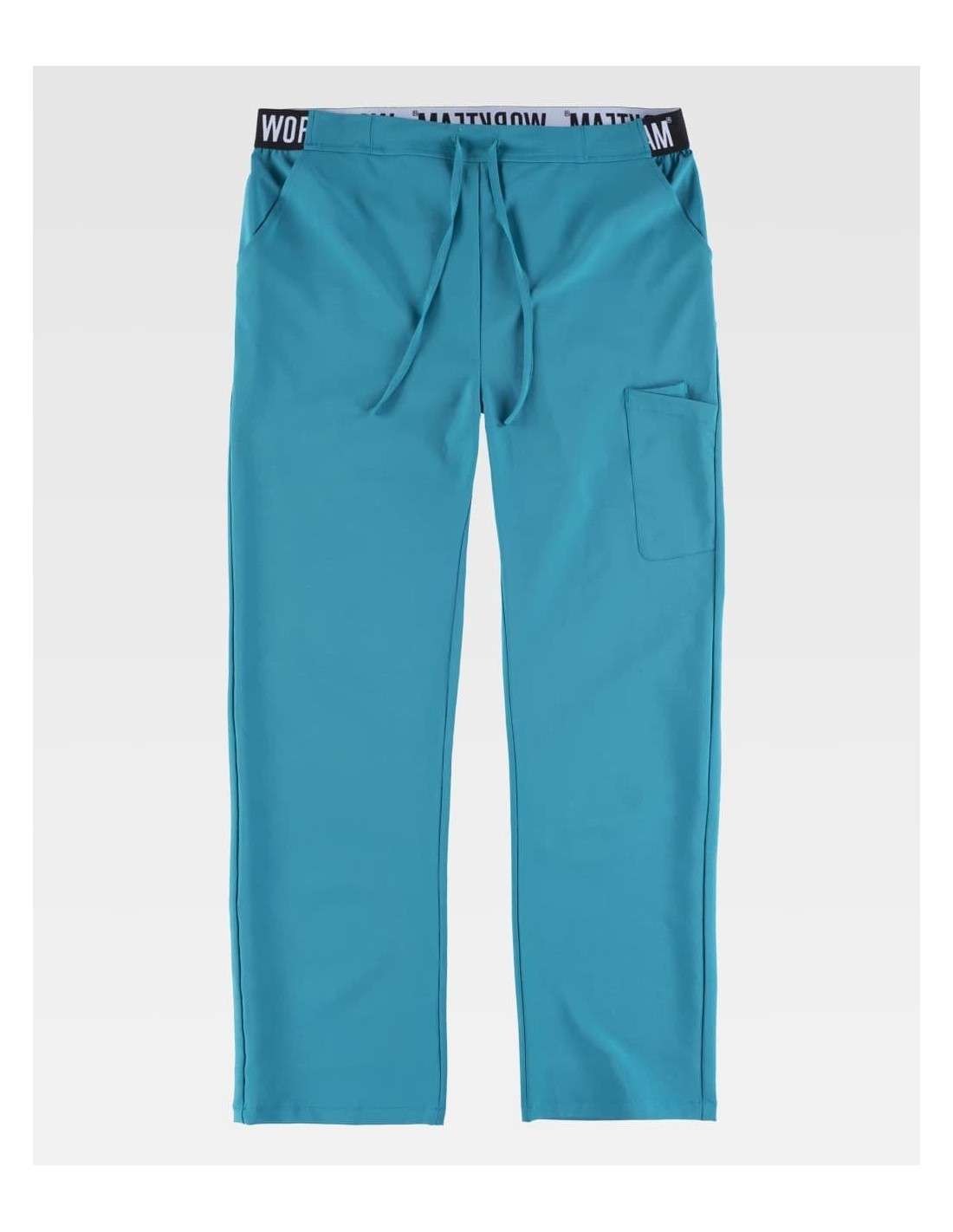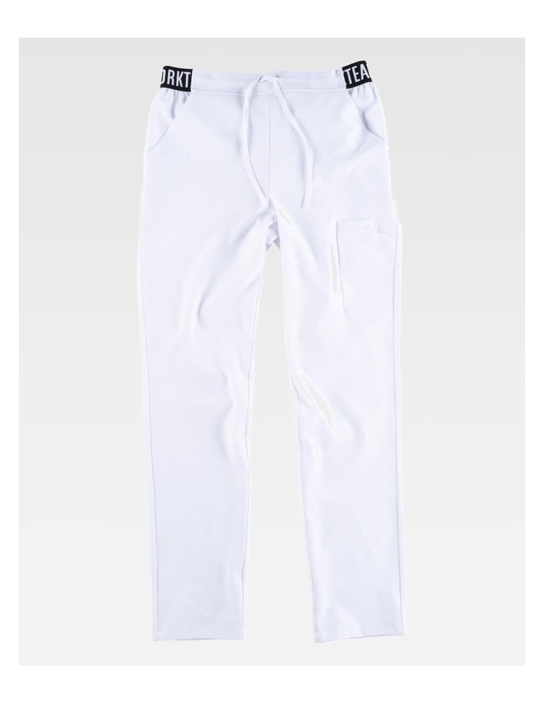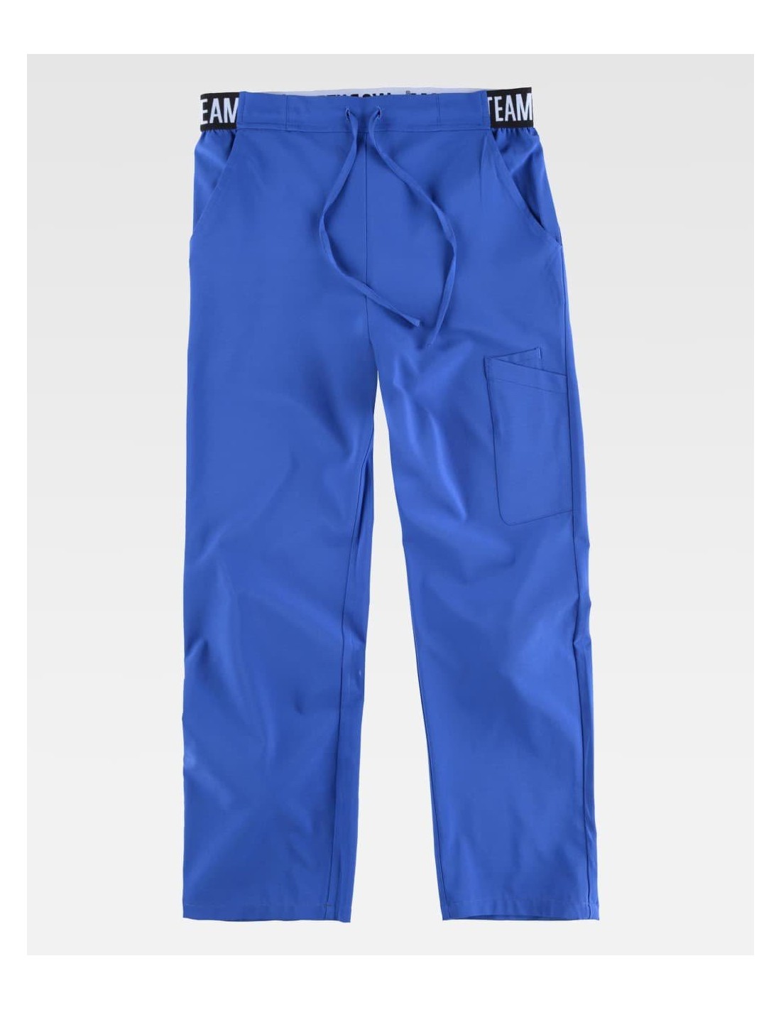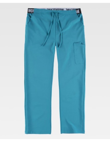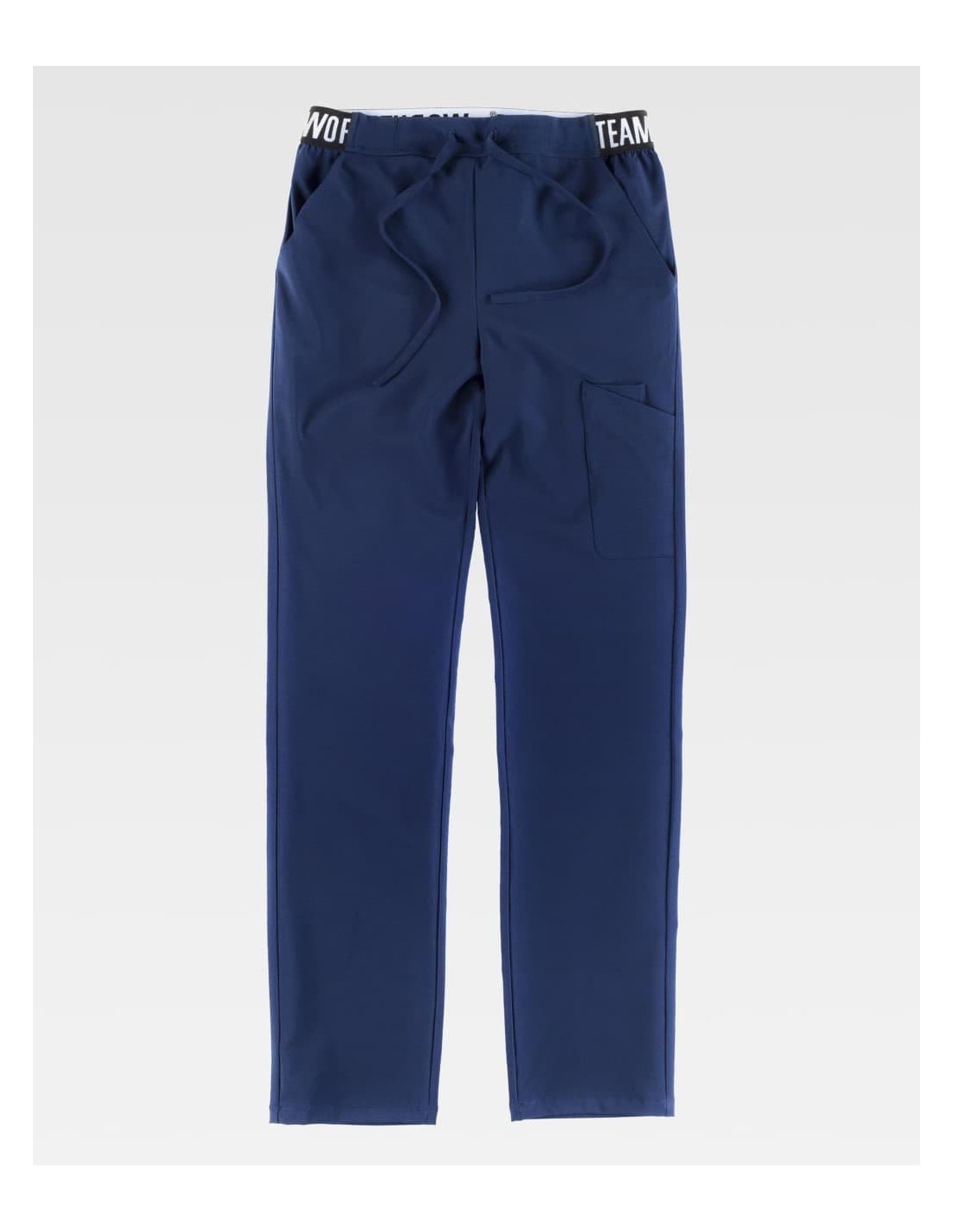 Pantalón unisex con tejido elástico. Dos bolsos de abertura inclinada en los costados. Un bolsillo doble de plastón en pernera. Un bolsillo trasero de ojal. Elástico en la cintura y ajuste de cordón. Composición 93% Poliéster 7% Elastano