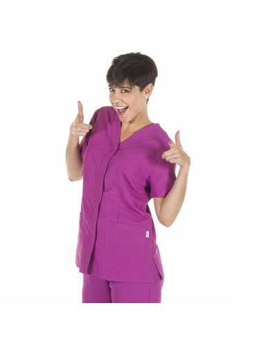 Blusa de mujer de Garys, confeccionado en microfibra de un tejido avanzado con propiedades antibacterianas y transpirables, esta prenda es de manga corta y con un cuello de pico, enseña un cierre discreto con unos botones ocultos, esta blusa incorpora dos bolsillos en la parte delantera, es una prenda semi ajustada ideal y moderna para el mundo sanitario