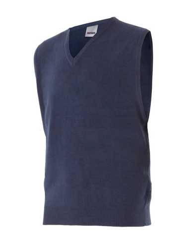 Chaleco de punto fino con cuello en forma de pico sin mangas del fabricante velilla modelo 99. Confeccionado en galga 100% acrílico.
