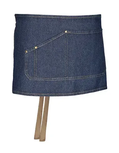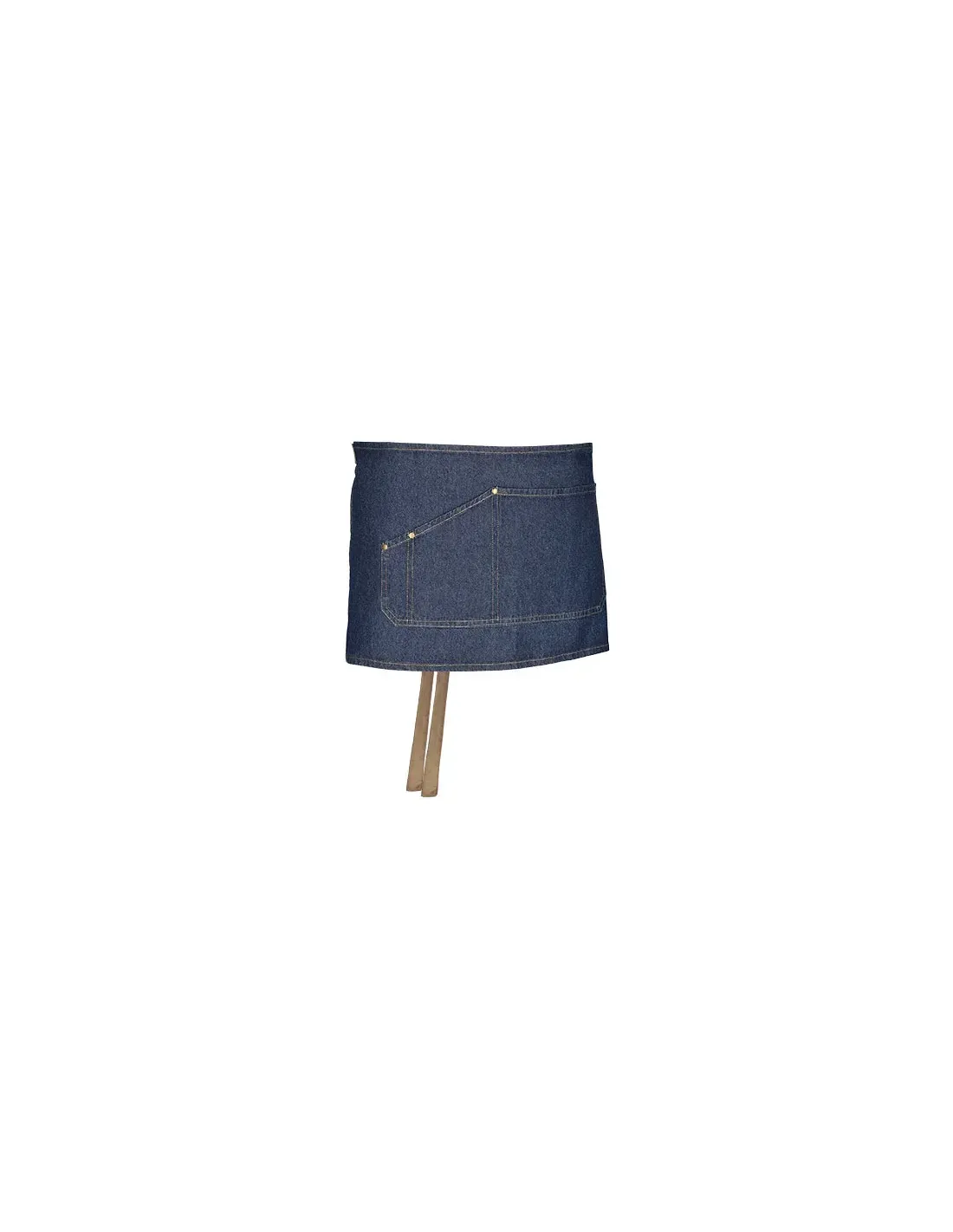 Delantal sin peto vaquero multibolsillos de la marca de Valento. Con cintas laterales gruesas de color kamel para con estas poder ajustar de mediante a un nudo a la cintura y así poder obtener una mejor sujección a la cintura. Contornos con dobladillo y tachuelas metálicas en los bolsillos que refuerzan de esta manera su estructura, delantal con un amplio bolsillo compartimiento para tener todo mucho más accesible a la hora de una jornada laboral, incluyendo un departamento para la colocación de un bolígrafo.