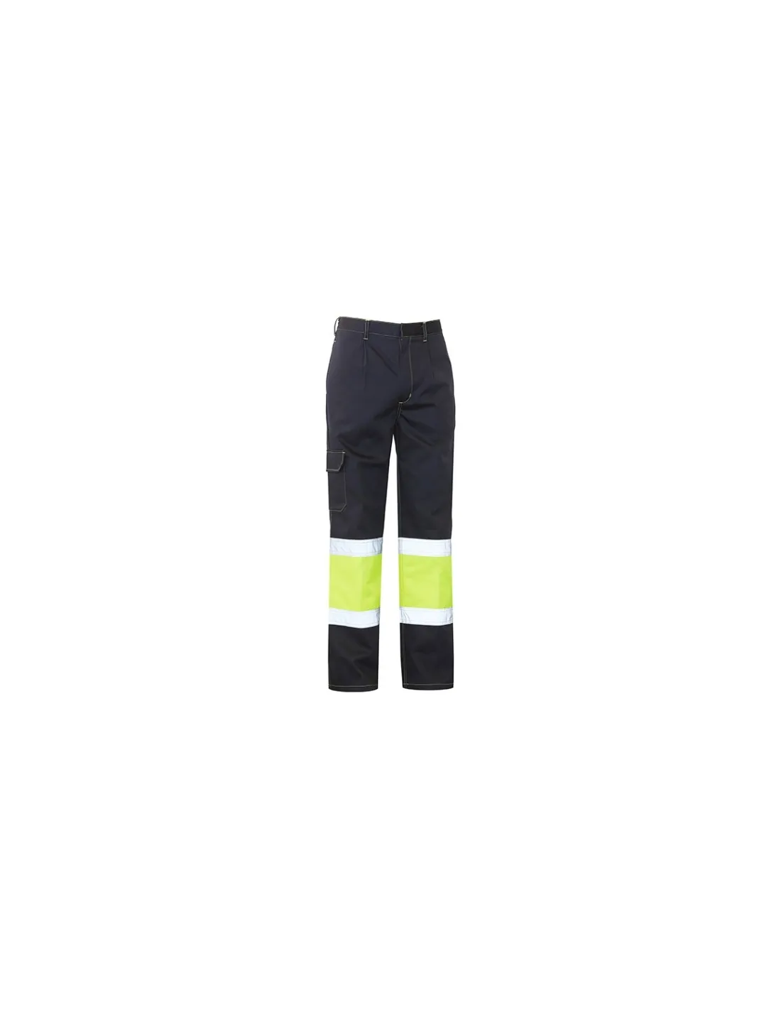 Pantalón con media cintura elástica en la parte trasera, dos bolsillos delanteros en la costura, un bolsillo de parche con tapeta y velcro en la pierna derecha, y un bolsillo trasero con tapeta y velcro. Botón de clip oculto en la cinturilla. Forro del mismo tejido. Dos bandas reflectantes ignífugas.