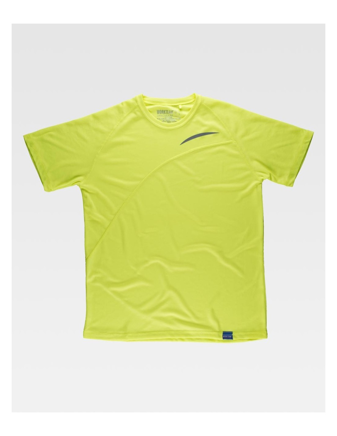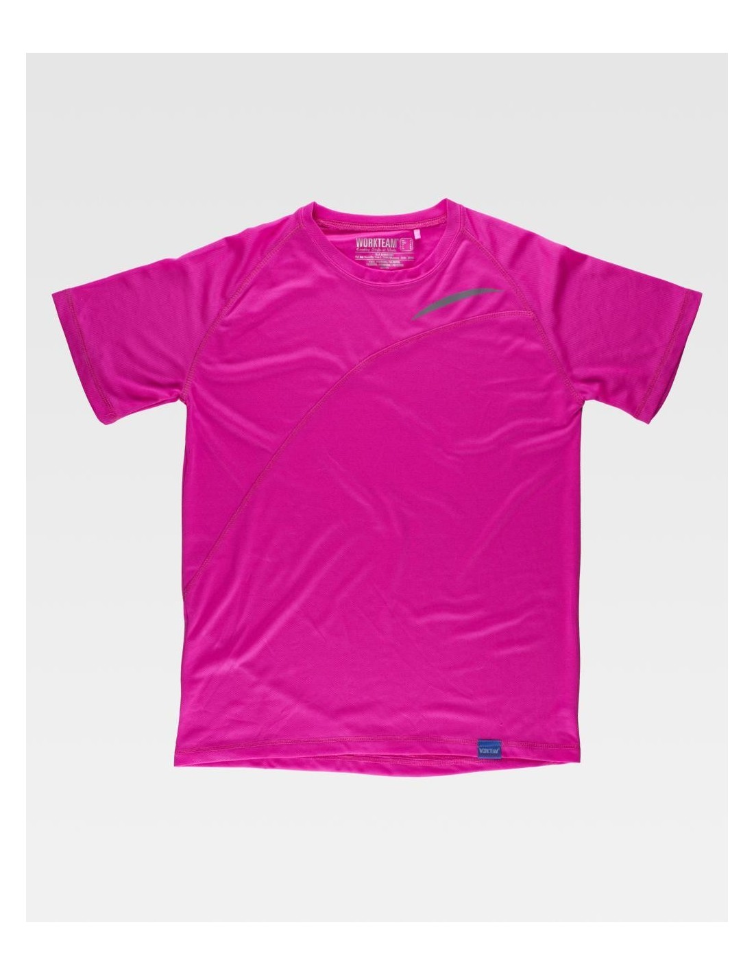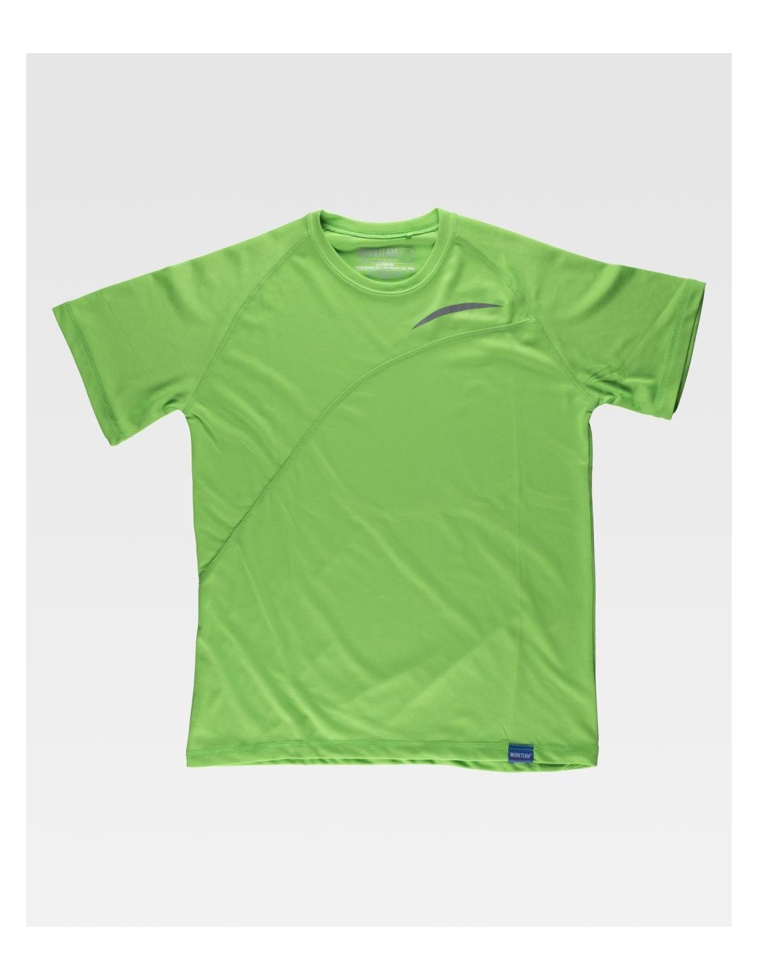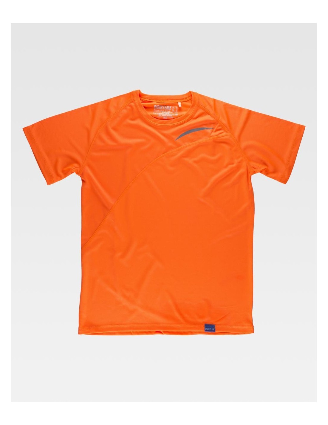 Camiseta de manga corta de Worketam de diferentes colores básica, de cuello redondo, con cortes asimétricos en la parte de delante y de la de atrás de la camiseta, camiseta muy útil a la hora de realizar algún tipo de actividad y de un rápido secado.
