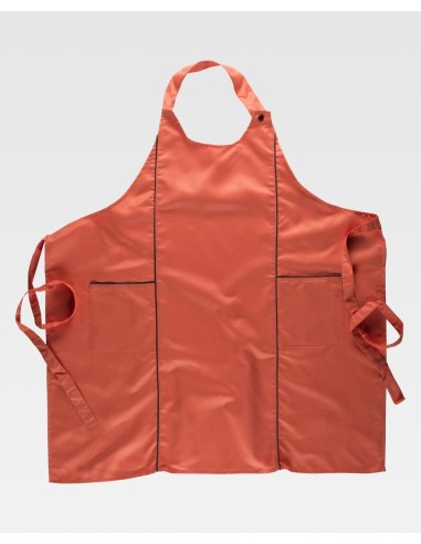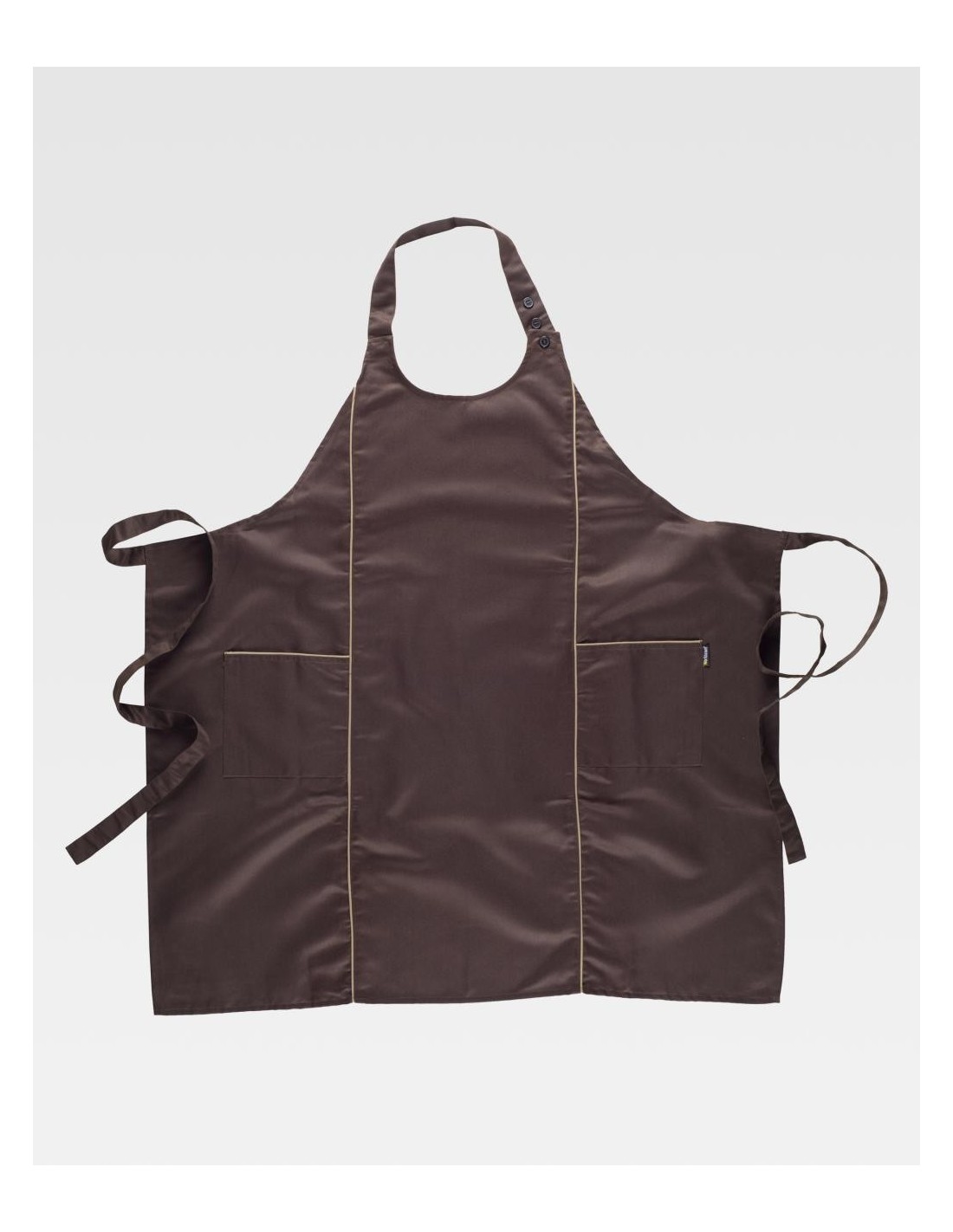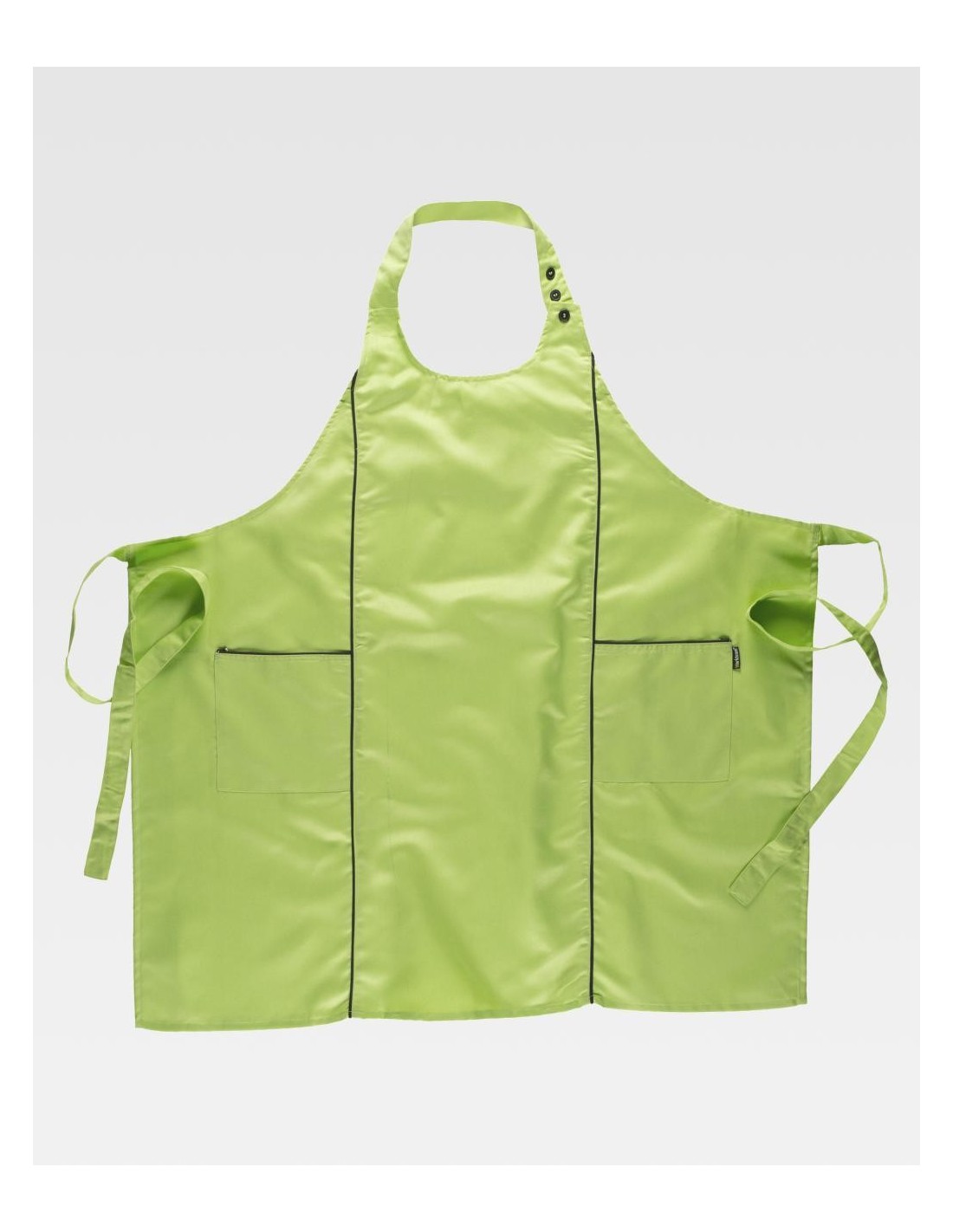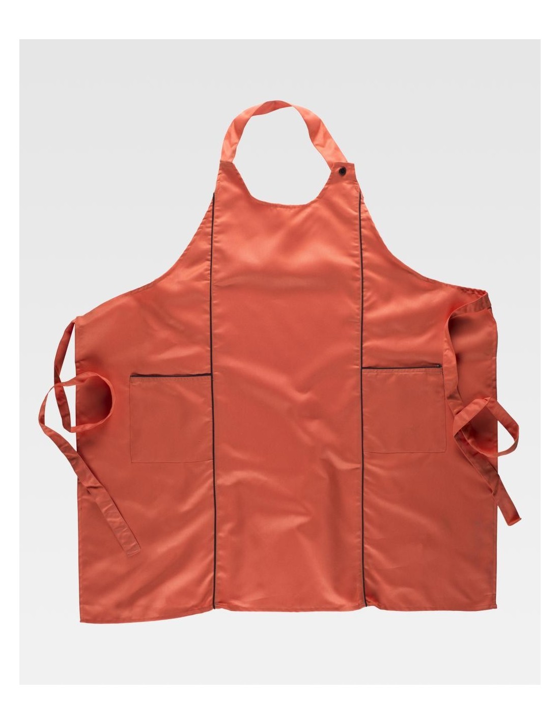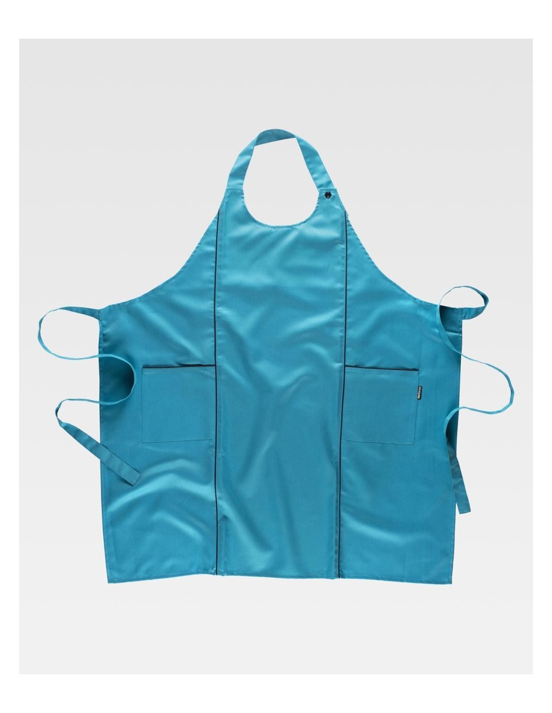 Delantal con peto, dos bolsillos laterales de diferentes colores.