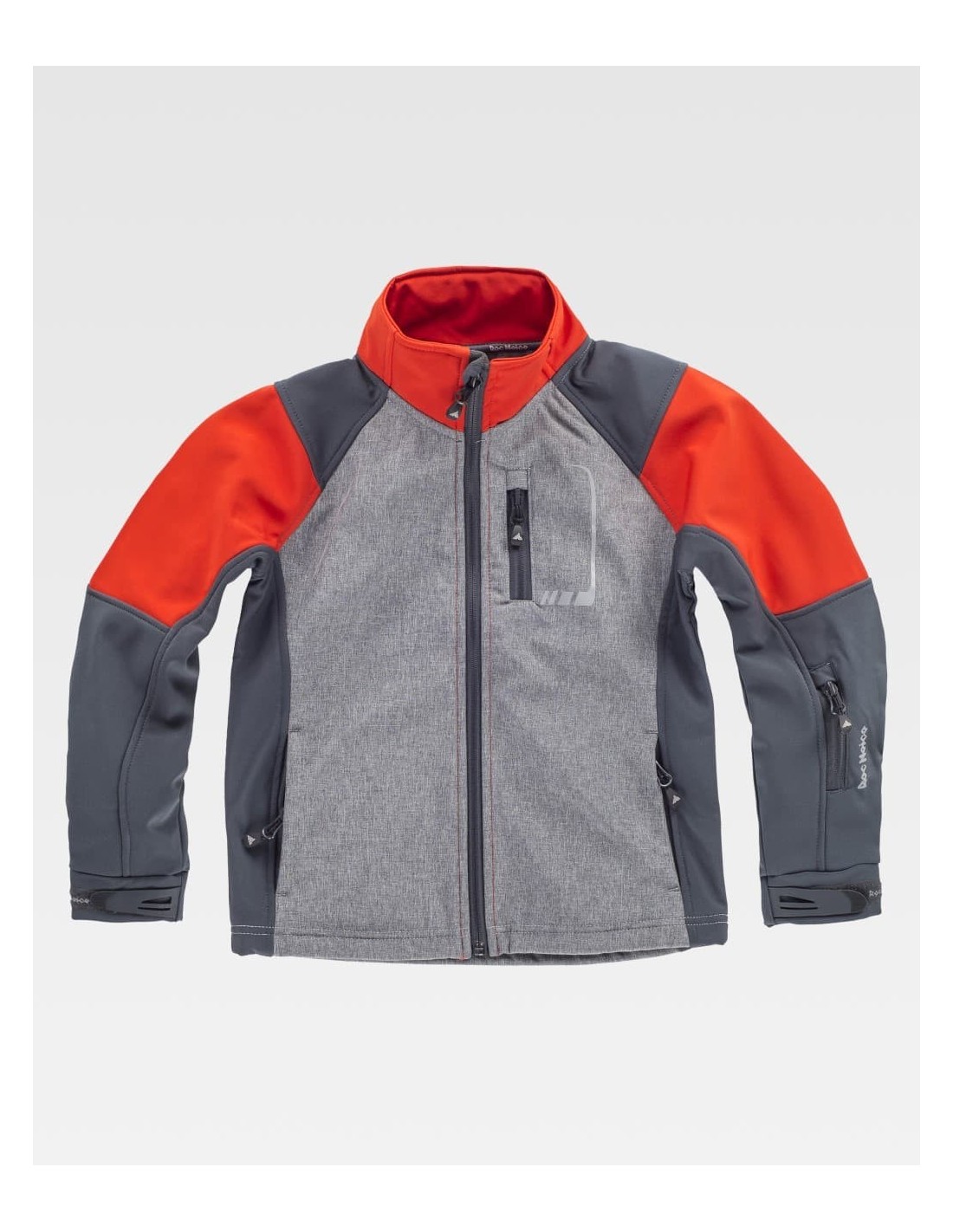 Chaqueta con protector de barbilla, en el bajo de la chaqueta con elástico ajustable, dos bolsillos de manga, bolsillo en la zona del pecho, chaqueta con tejido Workshell , ligeros detalles reflectantes y logos en la manga y en la espalda, el revestimiento impide que entre el agua, ajustes en los bajos y en los puños.