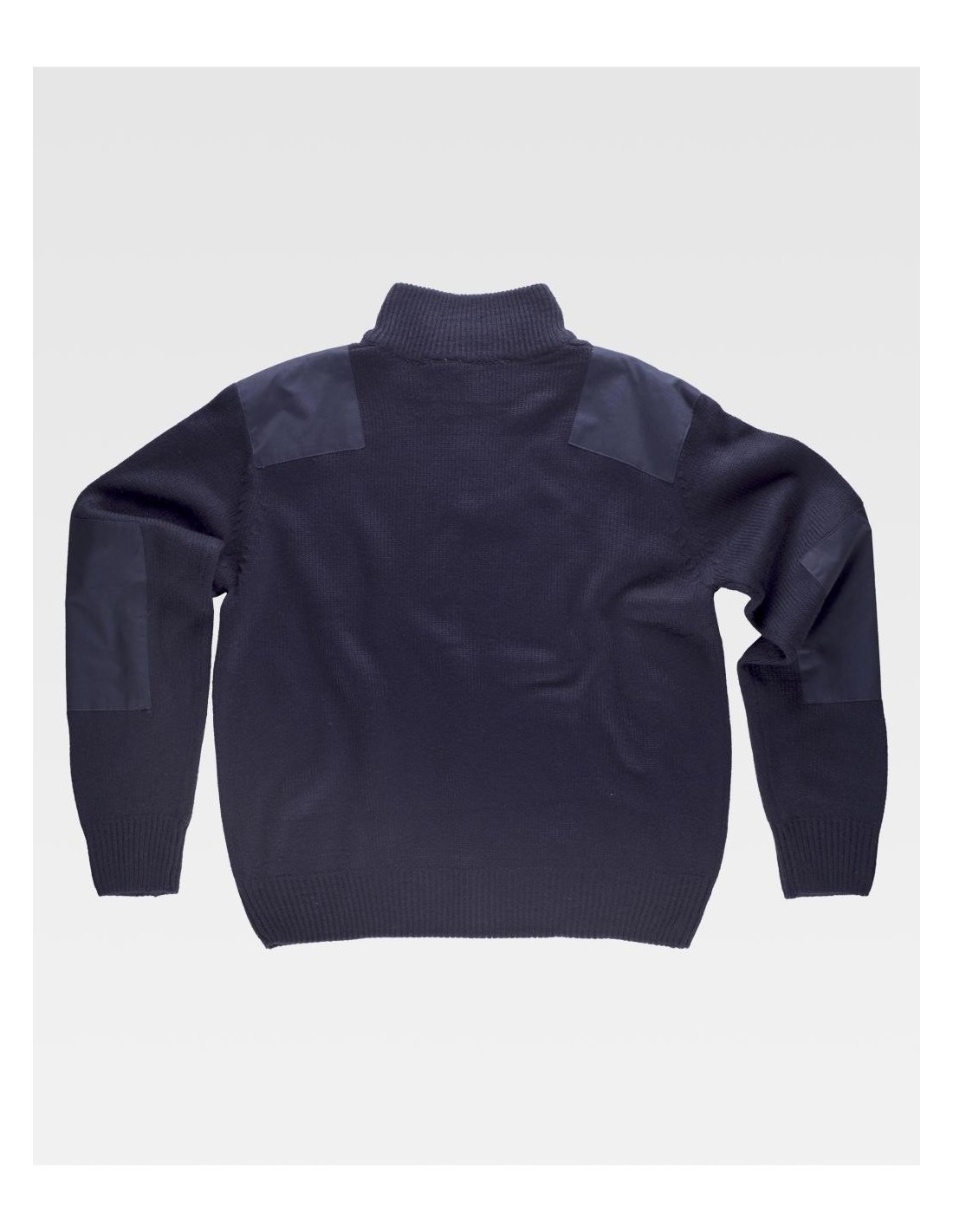 Jersey básico de Workteam de cuello alto en punto grueso, cierre de media cremallera de nylon, con refuerzos con un tono ligeramente distinto en los hombros y codos, cuellos, puños y la cintura elásticos en un punto canalé, jersey especialmente caracterizado por su corte moderno, cómodo y deportivo.